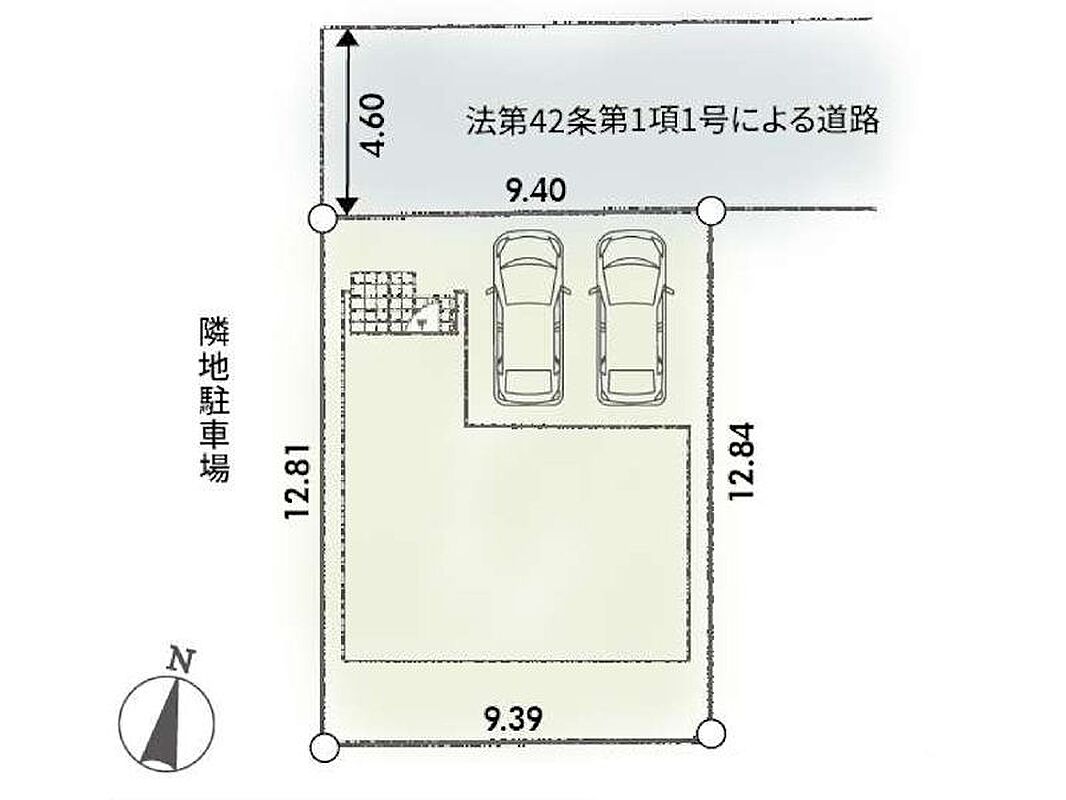 | 駐車場 | 2台 | 道路の幅員 | :北4.6m |