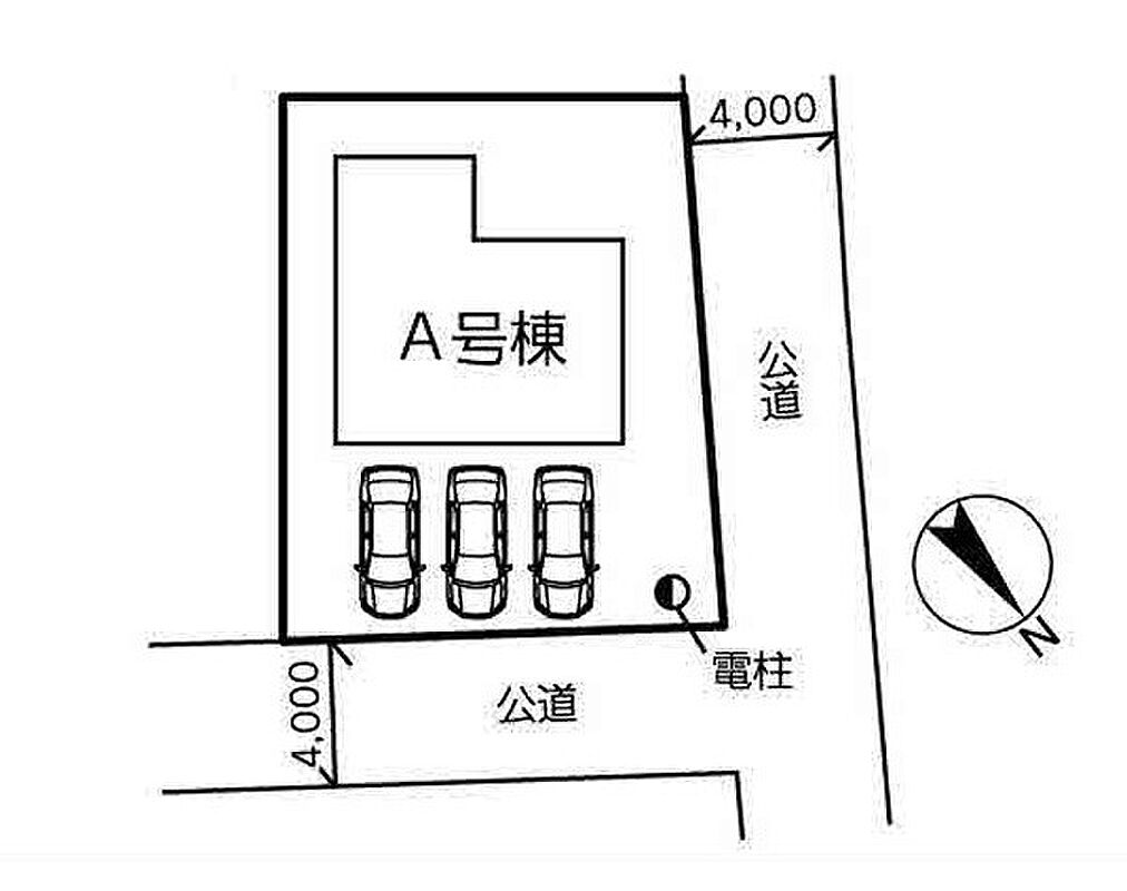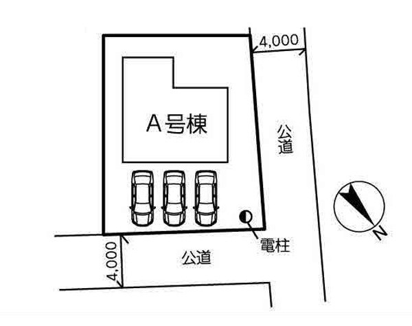 | 駐車場 | 3台 | 道路の幅員 | :北東4m 北西4m |
