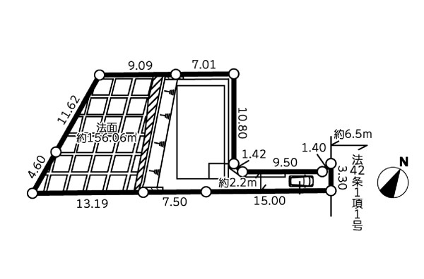 | 駐車場 | 1台 | 道路の幅員 | :東6.5m |