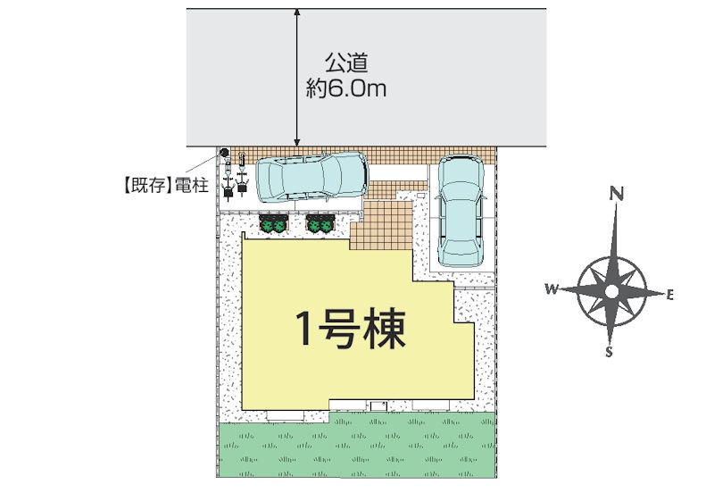 | 駐車場 | 2台 | 道路の幅員 | 1号棟:北6m |