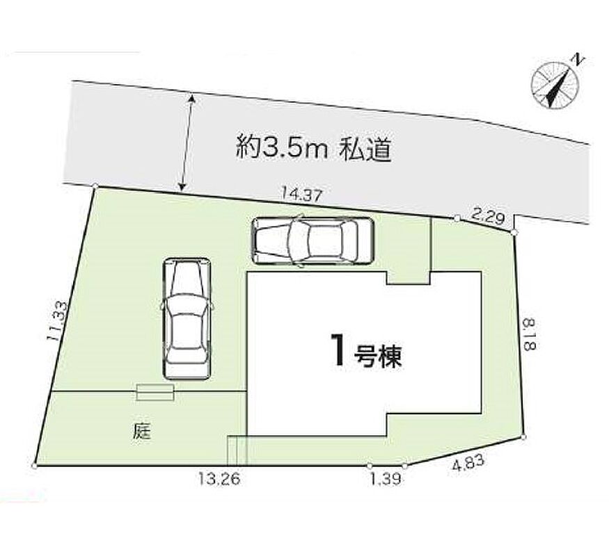 | 駐車場 | 2台 | 道路の幅員 | 1号棟:北西2.9m |
