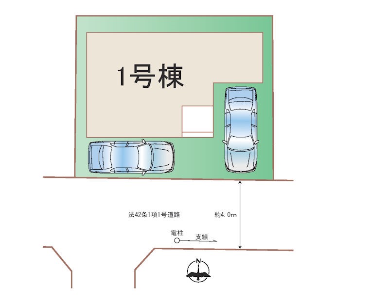 | 駐車場 | 2台 | 道路の幅員 | 1号棟:南4m |