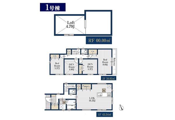 | 建物面積 | 96.46m2~100.09m2 | 土地面積 | 66.54m2~105m2 |