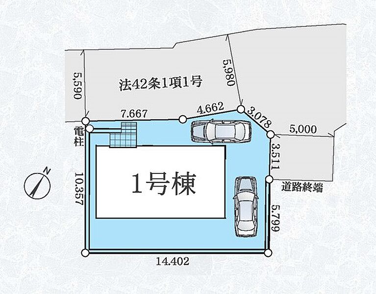 | 駐車場 | 2台 | 道路の幅員 | 1号棟:北西5.5m |