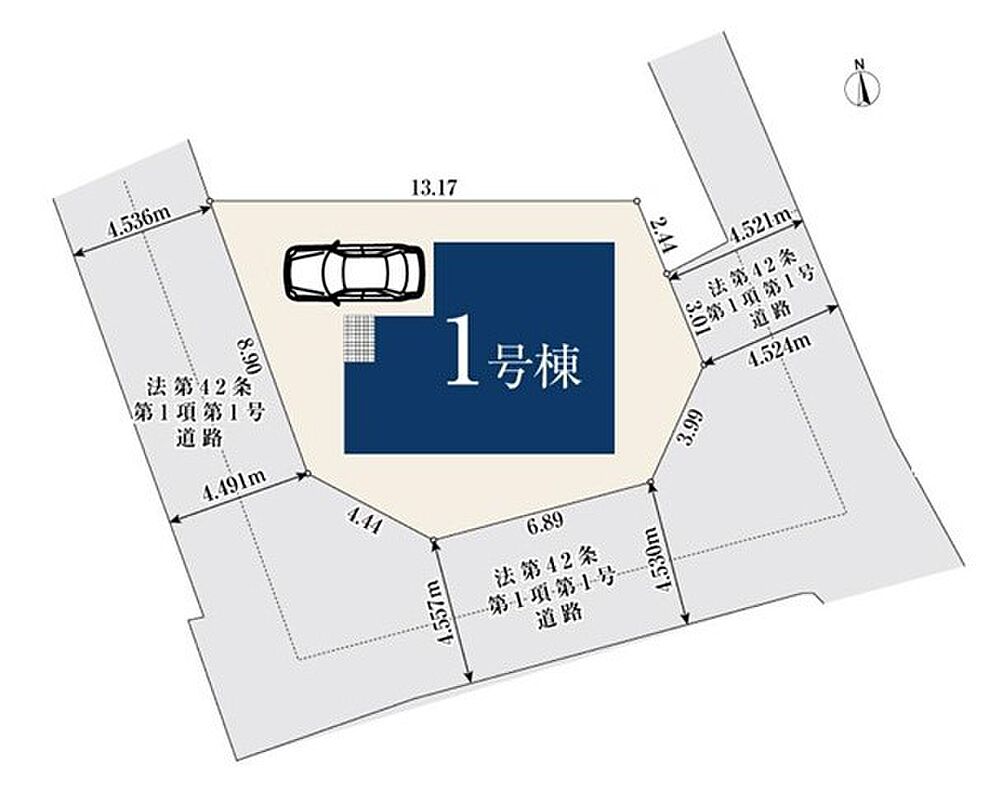 | 駐車場 | 1台 | 道路の幅員 | :南東4.5m 北東4.5m 南西4.5m |