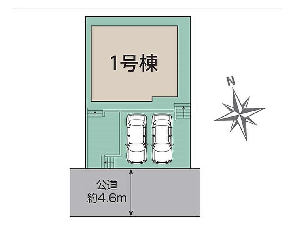 | 駐車場 | 2台 | 道路の幅員 | 1号棟:南4.6m |