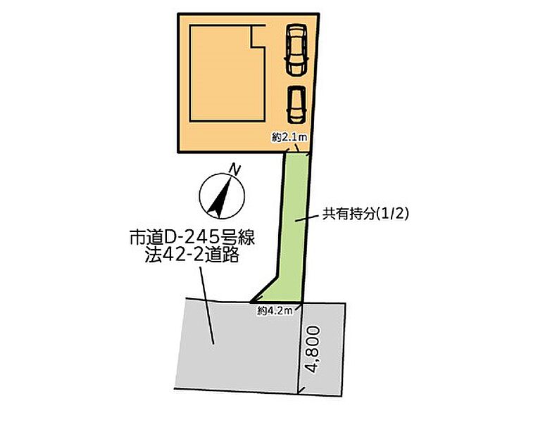 | 駐車場 | 2台 | 道路の幅員 | :南東4.8m |