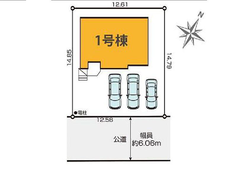 | 駐車場 | 3台 | 道路の幅員 | 1号棟:南東6m |