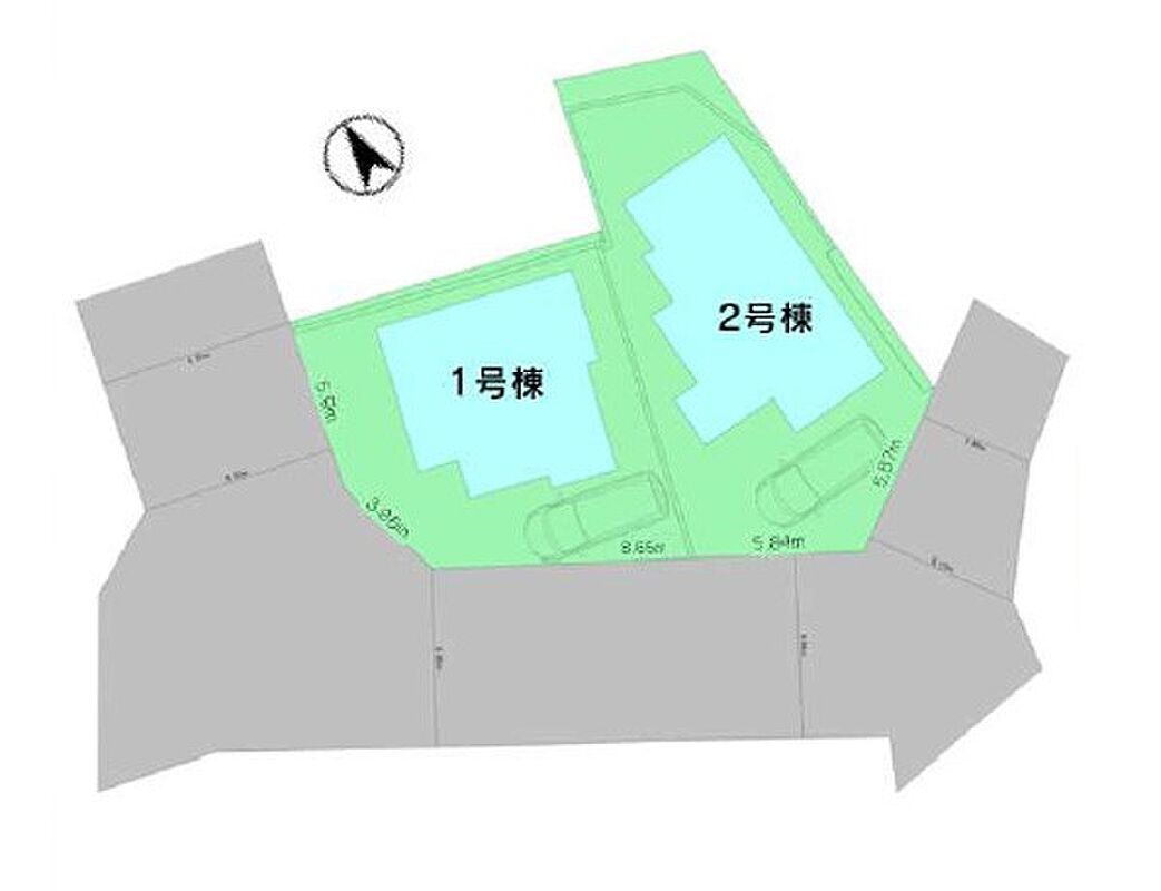 | 駐車場 | 1台 | 道路の幅員 | 1号棟:南6m 西6m /2号棟:南6.1m 南東3.8m |