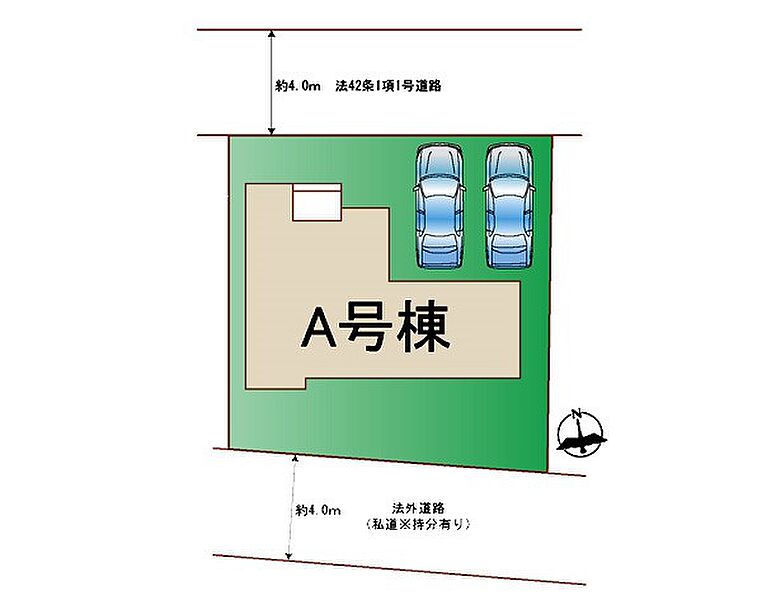 | 駐車場 | 2台 | 道路の幅員 | :北4m |