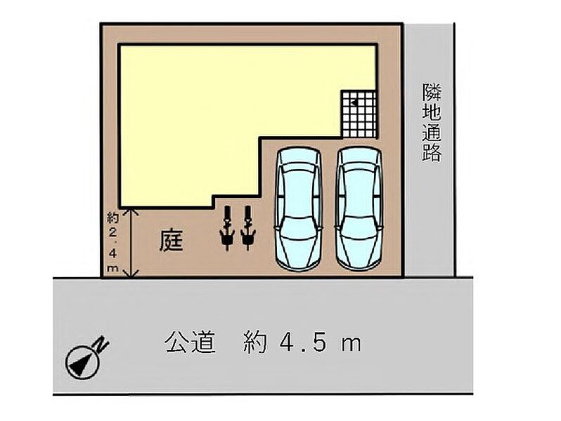 | 駐車場 | 2台 | 道路の幅員 | :南東4.5m |