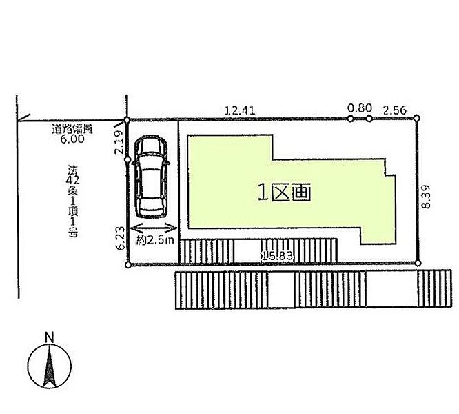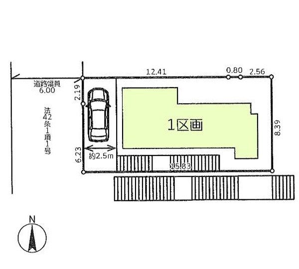 | 駐車場 | 1台 | 道路の幅員 | :西6m |