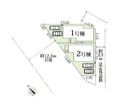 | 駐車場 | 2台 | 道路の幅員 | 2号棟:西12.3m |