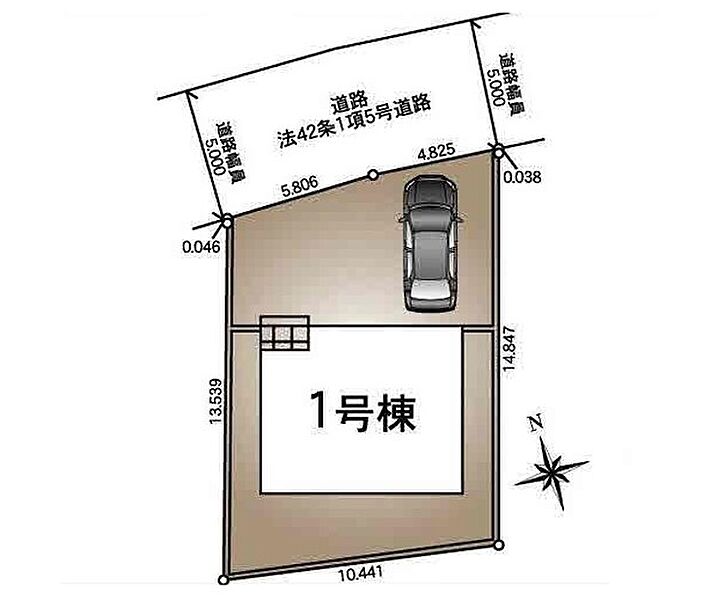 | 駐車場 | 1台 | 道路の幅員 | 1号棟:北5m |