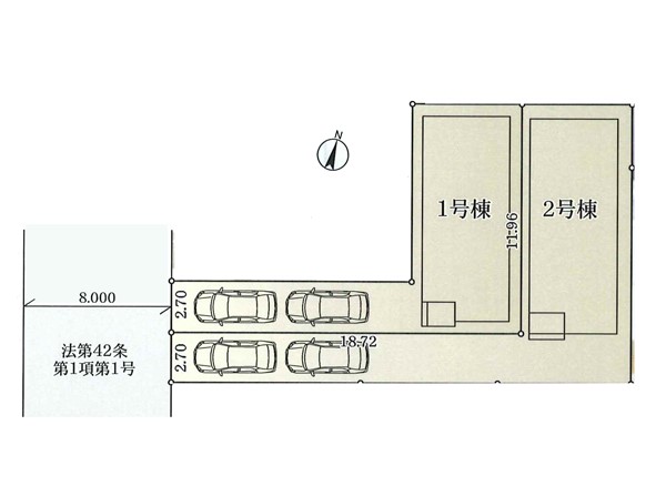 | 駐車場 | 2台 | 道路の幅員 | 1号棟:西8m |