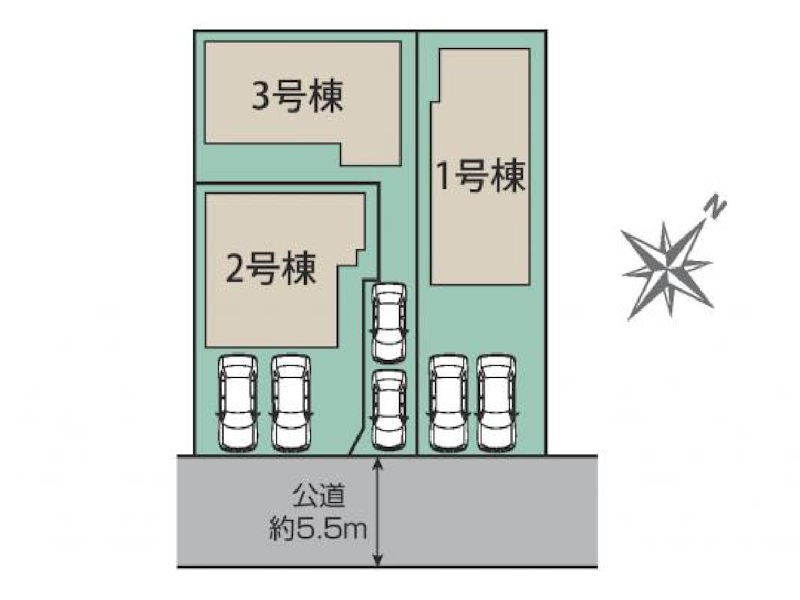 | 駐車場 | 2台 | 道路の幅員 | 3号棟:南東5.5m |