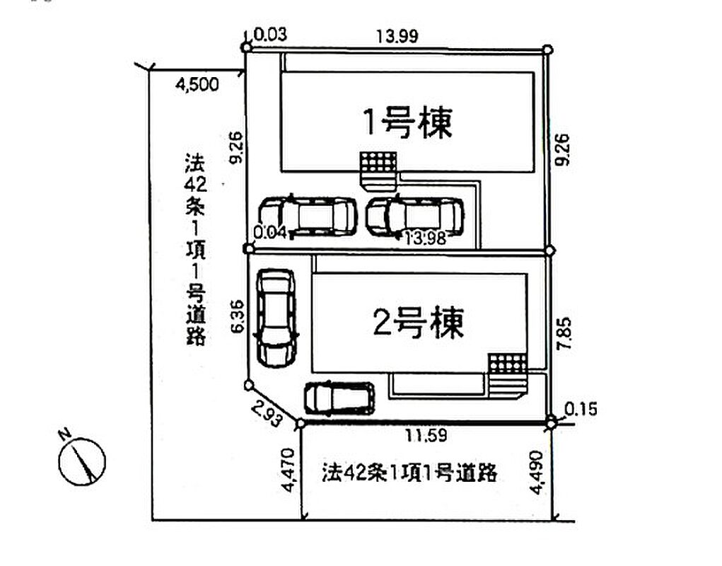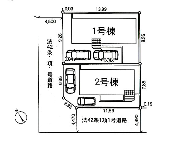 | 駐車場 | 1台 | 道路の幅員 | 2号棟:北西4.5m 南西4.4m |
