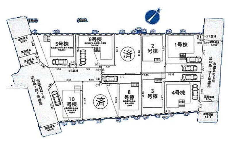 | 駐車場 | 1台 | 道路の幅員 | 8号棟:南西4.5m /1号棟:北東5.9m /4号棟:北東6m |