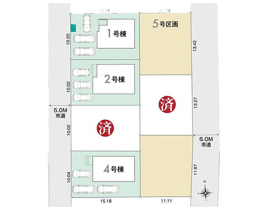 | 駐車場 | 3台 | 道路の幅員 | 1号棟:西5m |
