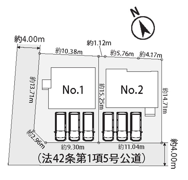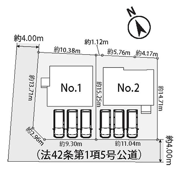 | 駐車場 | 3台 | 道路の幅員 | 1号棟:南西4m 北西4m |