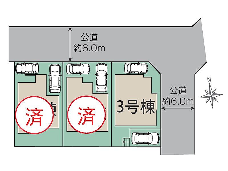 | 駐車場 | 2台 | 道路の幅員 | 3号棟:北6m 東6m |