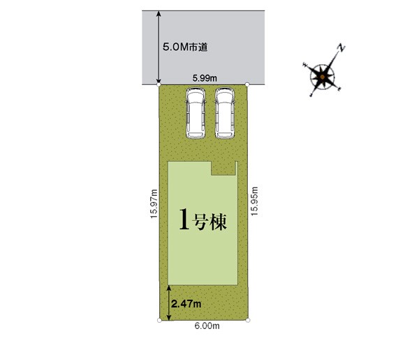 | 駐車場 | 2台 | 道路の幅員 | :北5m |