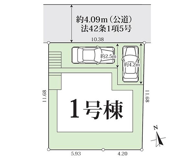 | 駐車場 | 2台 | 道路の幅員 | 1号棟:北4m |