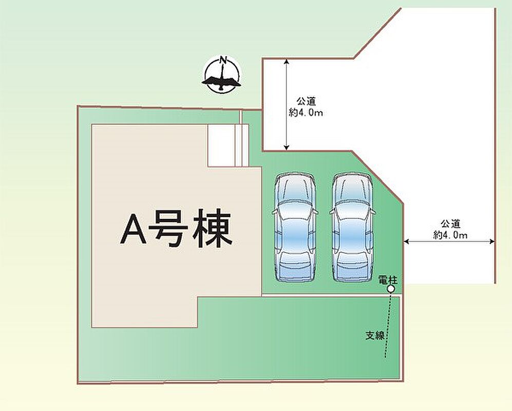 | 駐車場 | 2台 | 道路の幅員 | :東4m 北4m |