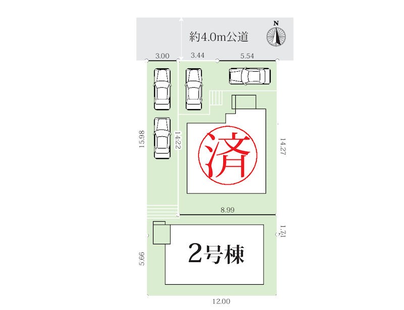 | 駐車場 | 2台 | 道路の幅員 | 2号棟:北4m |