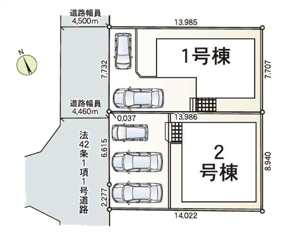 | 駐車場 | 3台 | 道路の幅員 | 2号棟:西4.4m |