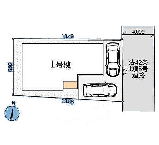 | 駐車場 | 2台 | 道路の幅員 | 1号棟:東4m |