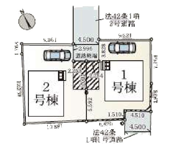 | 駐車場 | 1台 | 道路の幅員 | 2号棟:北東4.5m |
