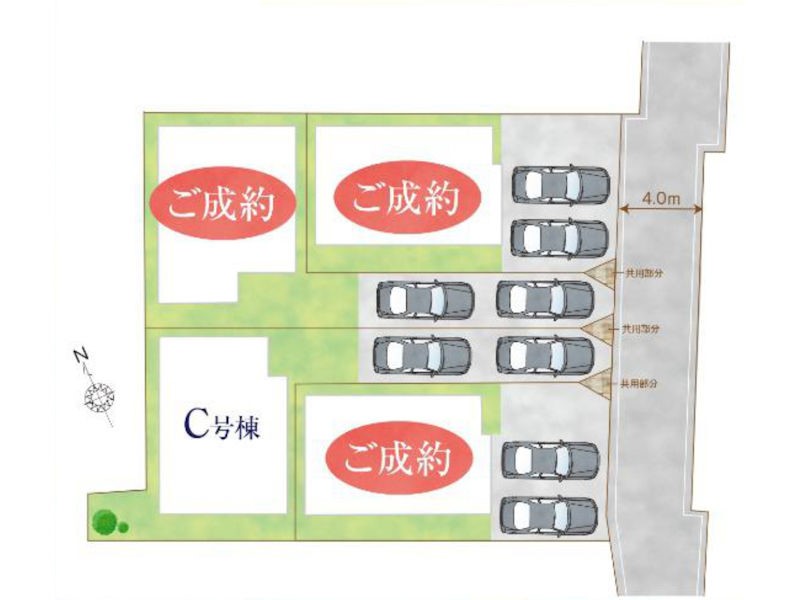 | 駐車場 | 2台 | 道路の幅員 | C号棟:東4m |