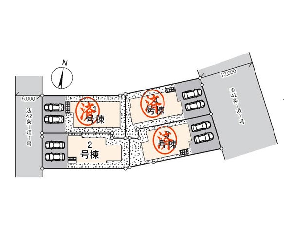 | 駐車場 | 2台 | 道路の幅員 | 2号棟:西6m |