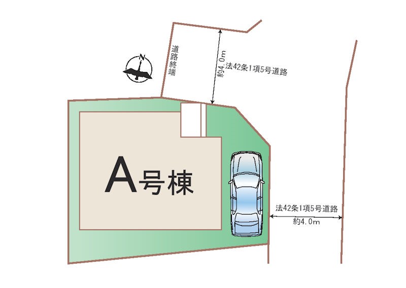 | 駐車場 | 1台 | 道路の幅員 | A号棟:東4m 北4m |