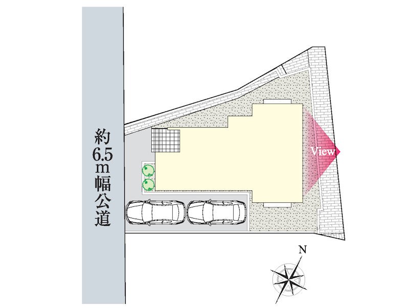 | 駐車場 | 2台 | 道路の幅員 | 1号棟:南西6.5m |