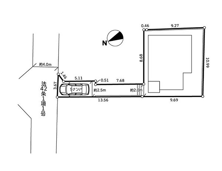 | 駐車場 | 1台 | 道路の幅員 | :北4m |
