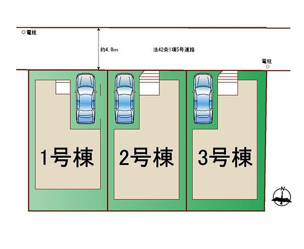 | 駐車場 | 1台 | 道路の幅員 | 2号棟:北4m /3号棟:北4m /1号棟:北4m |