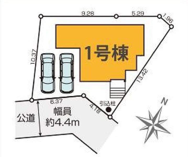 | 駐車場 | 2台 | 道路の幅員 | 1号棟:南4.4m |