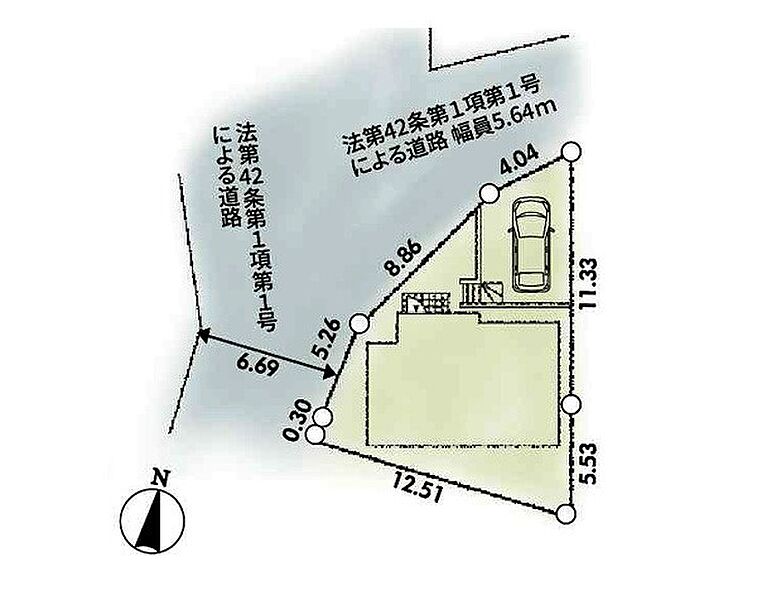 | 駐車場 | 1台 | 道路の幅員 | :西6.6m 北5.6m |