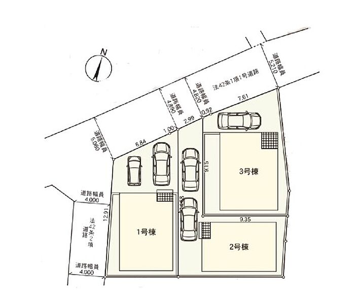 | 駐車場 | 2台 | 道路の幅員 | 2号棟:北西4.8m |