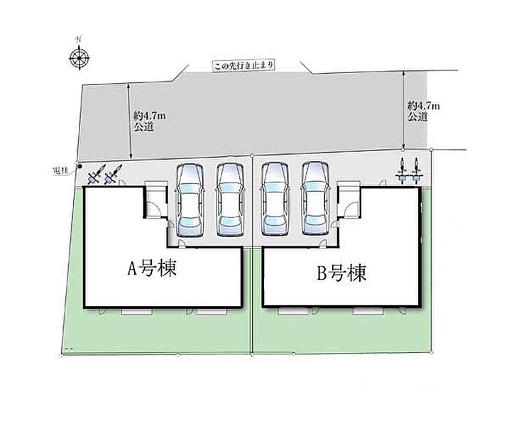 | 駐車場 | 2台 | 道路の幅員 | B号棟:北4.7m |
