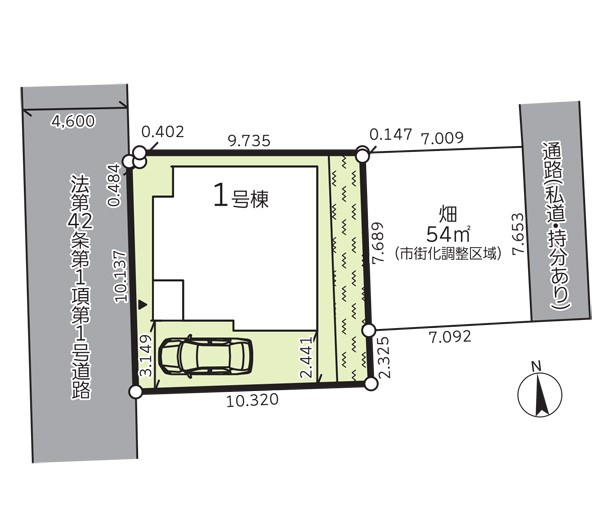 | 駐車場 | 1台 | 道路の幅員 | :西4.6m |