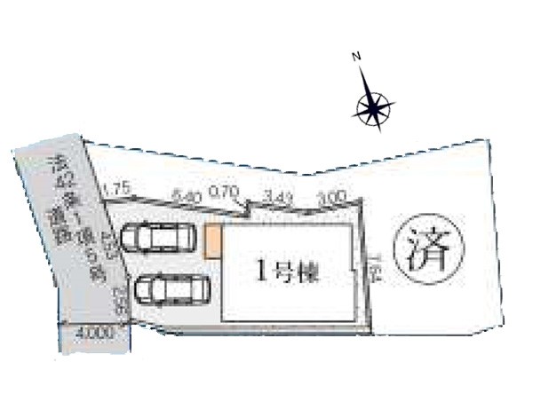 | 駐車場 | 2台 | 道路の幅員 | 西4m 私道 |