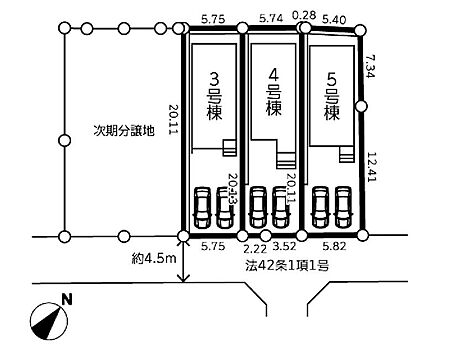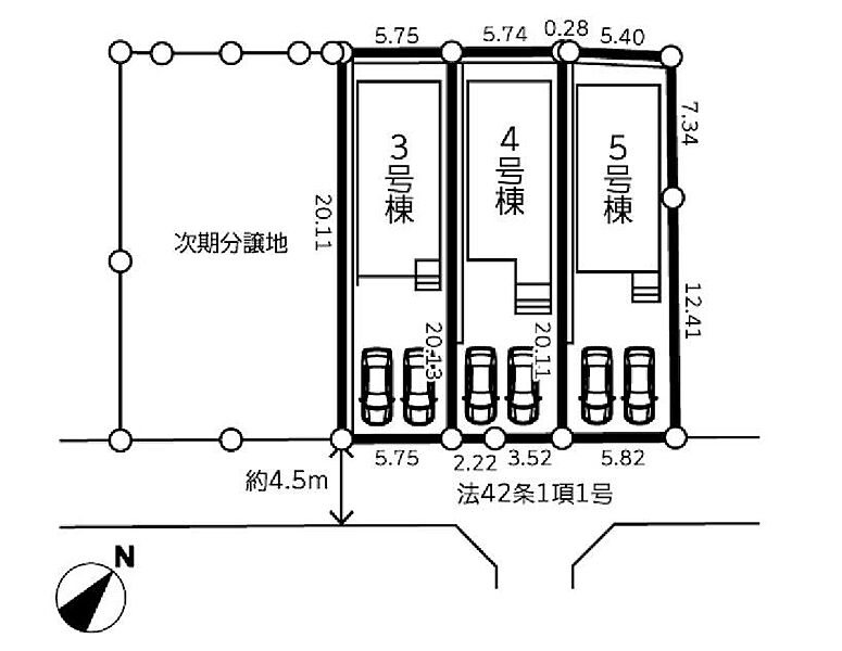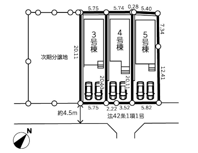 | 駐車場 | 2台 | 道路の幅員 | 4号棟:南東4.5m /5号棟:南東4.5m /3号棟:南東4.5m |