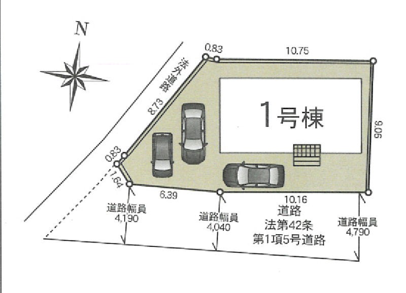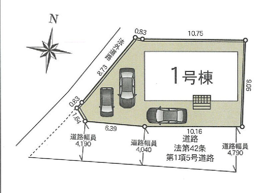 | 駐車場 | 3台 | 道路の幅員 | 1号棟:南4m |