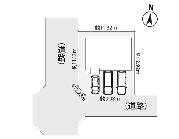 | 駐車場 | 3台 | 道路の幅員 | :南4.3m 西6.5m |