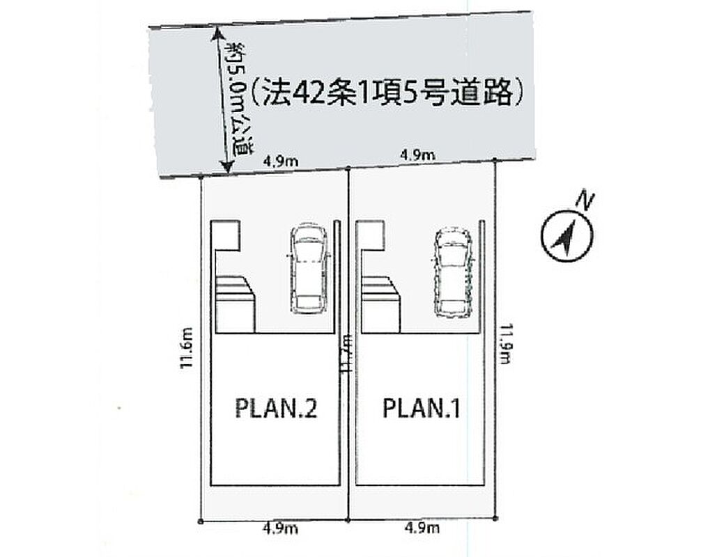 | 駐車場 | 1台 | 道路の幅員 | 1号棟:北西5m |