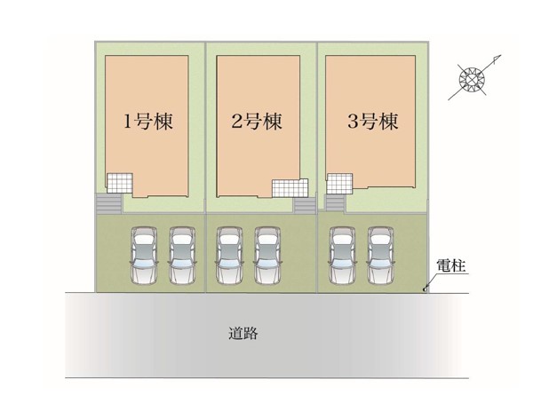 | 駐車場 | 2台 | 道路の幅員 | 1号棟:南東6m /2号棟:南東6m /3号棟:南東6m |