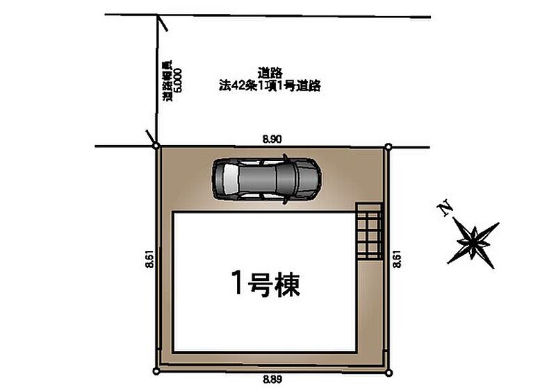 | 駐車場 | 1台 | 道路の幅員 | :北東5m |